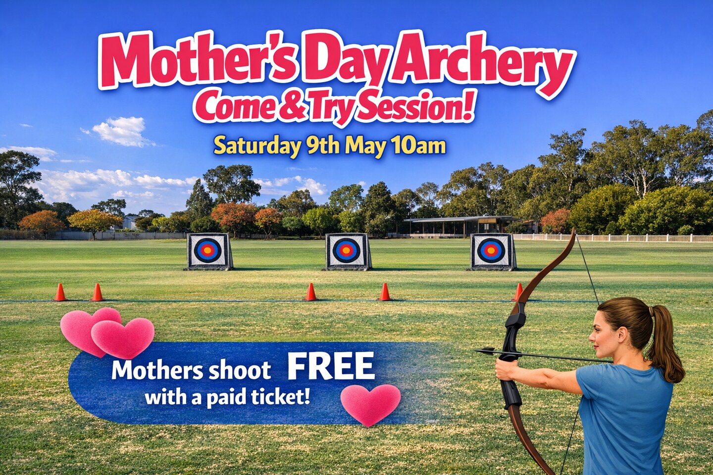 Shout your mum or significant person a morning activity with a difference and shoot some arrows with them. All Equipment is supplied, you just need to bring them along to the Koondrook Reserve and check in by 9:45am.